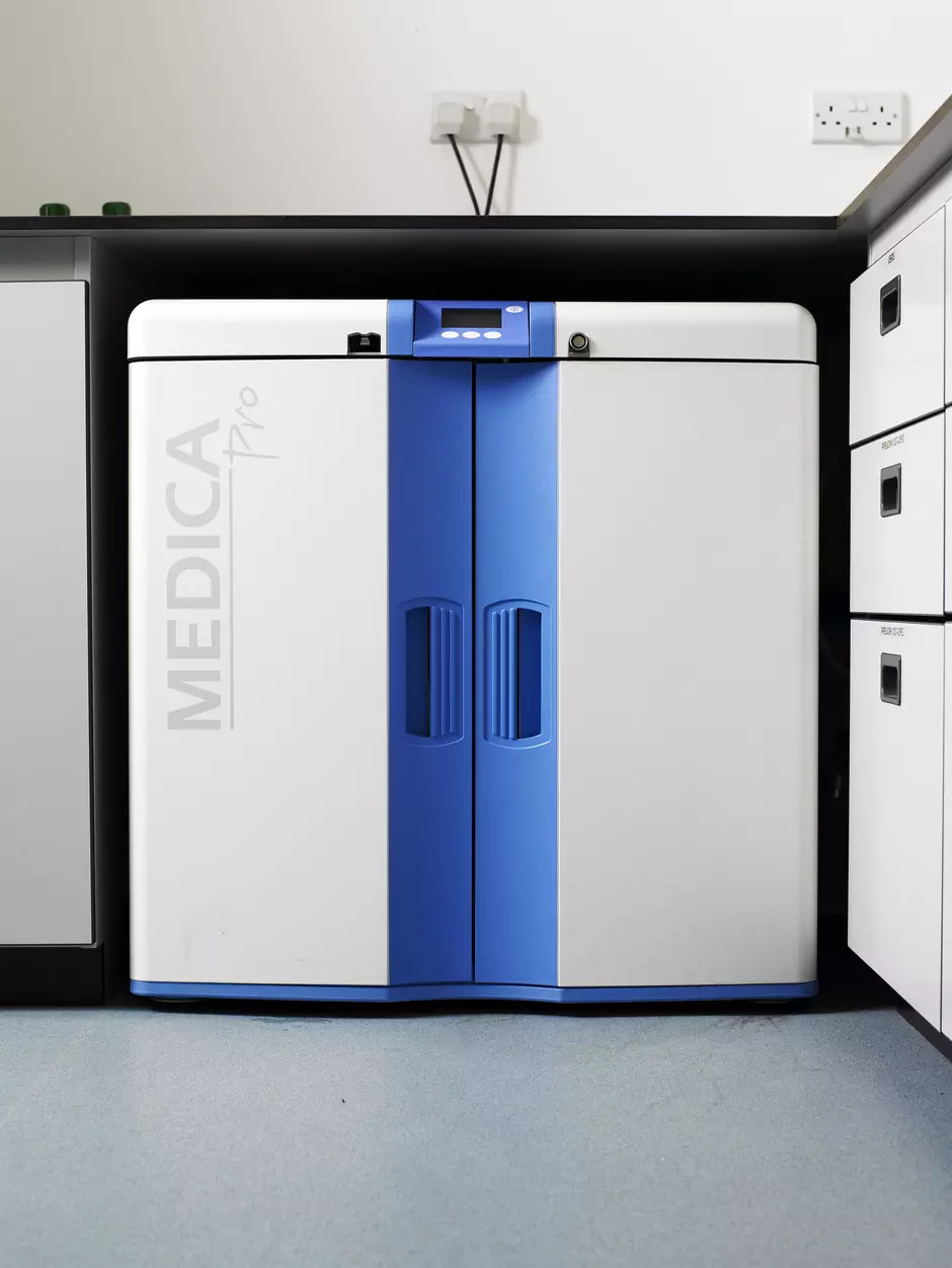 Toutes les unités Medica sont dotées d'un circuit de dérivation permettant de continuer à alimenter l'analyseur en eau conforme dans les situations d'urgence. L’unité Medica Biox est conçue pour traiter les effluents des analyseurs conformément à la règlementation sur les déchets médicaux.