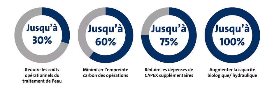 Hubgrade Wastewater Plant Performance réduit vos coûts d'investissement jusqu'à 100%, ainsi que jusqu'à 30% de vos coûts opérationnels quotidiens.
